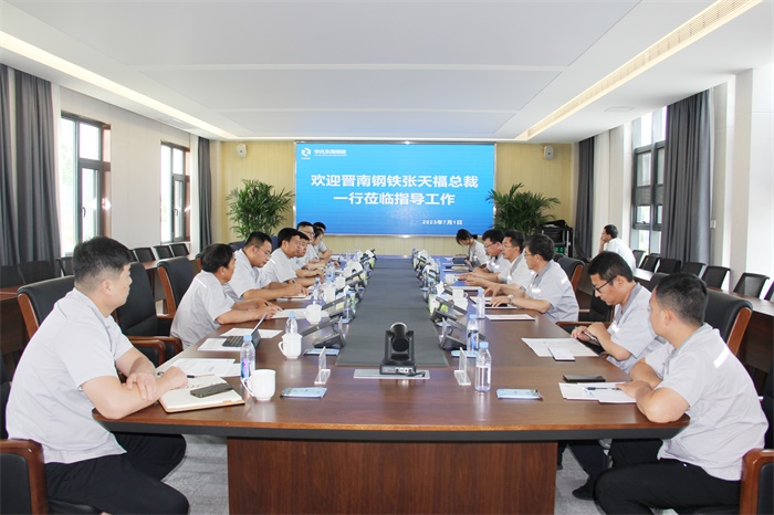 7月1日上午,山西晉南鋼鐵集團總裁張天福帶領工程項目處、銷售處、財務處等部門負責人來到華兆東南綠建考察交流。華兆東南綠建總經理鐘永來及領導班子成員等陪同考察。